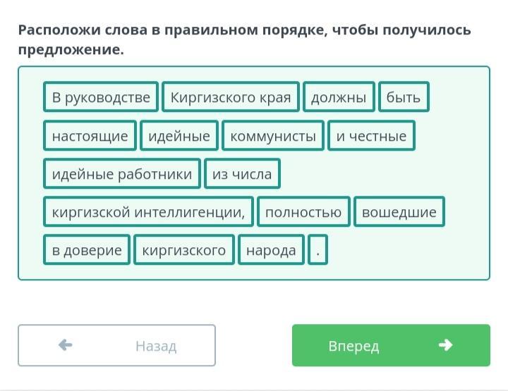 Расположи слова в правильном порядке, чтобы получилось предложение.