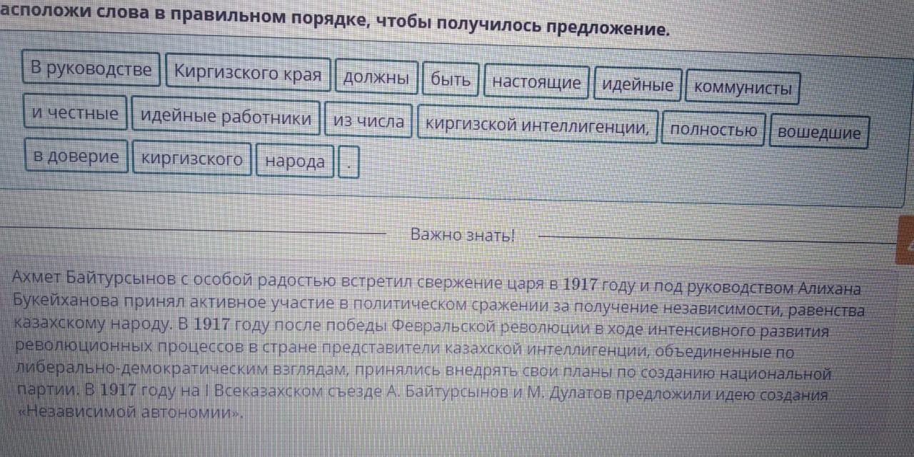 Расположи слова в правильном порядке, чтобы получилось предложение.