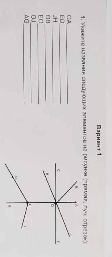 укажите название следующих элементов на рисунке (прямая луч отрезок)