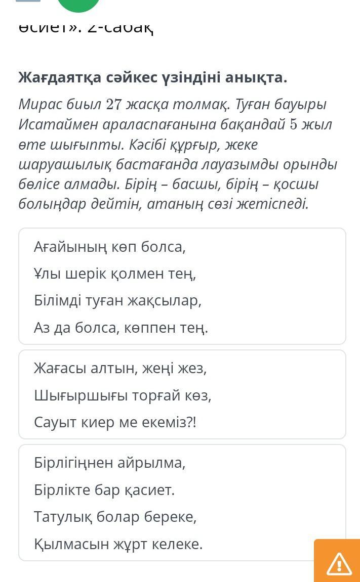 Жағдаятқа сәйкес үзіндіні анықта.