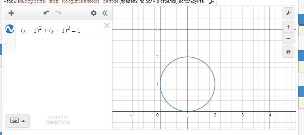 Построить (x-1)^2+(y-1)^2=1