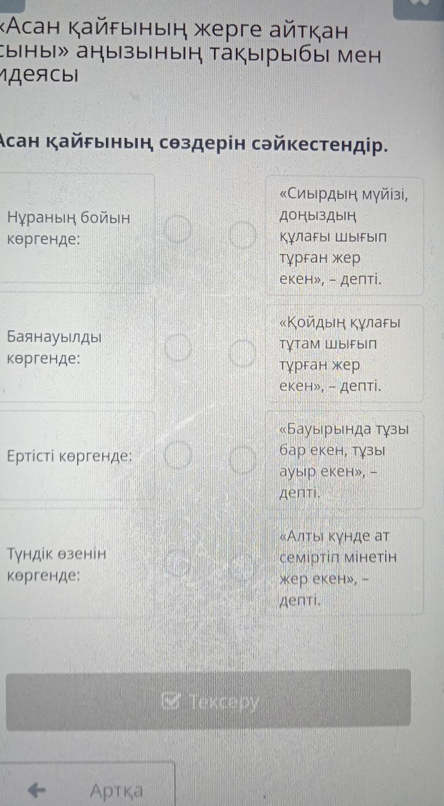 Асан қайғының сөздерін сәйкестендір