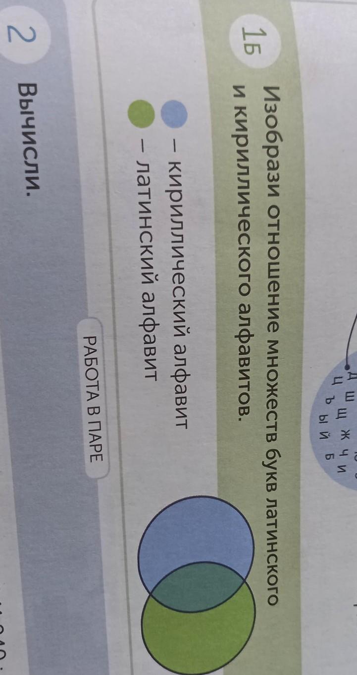 В пересечении кругов будут буквы, которые одинаково пишутся в обоих алфавитах: