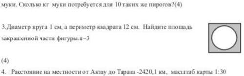 Диаметр круга 1 см, а периметр квадрата 12 см найдите площадь закравшенной фигуры. П~3 ДАЮ 10 БАЛЛОВ, ПОМОГИТЕ ПРОШУУУ