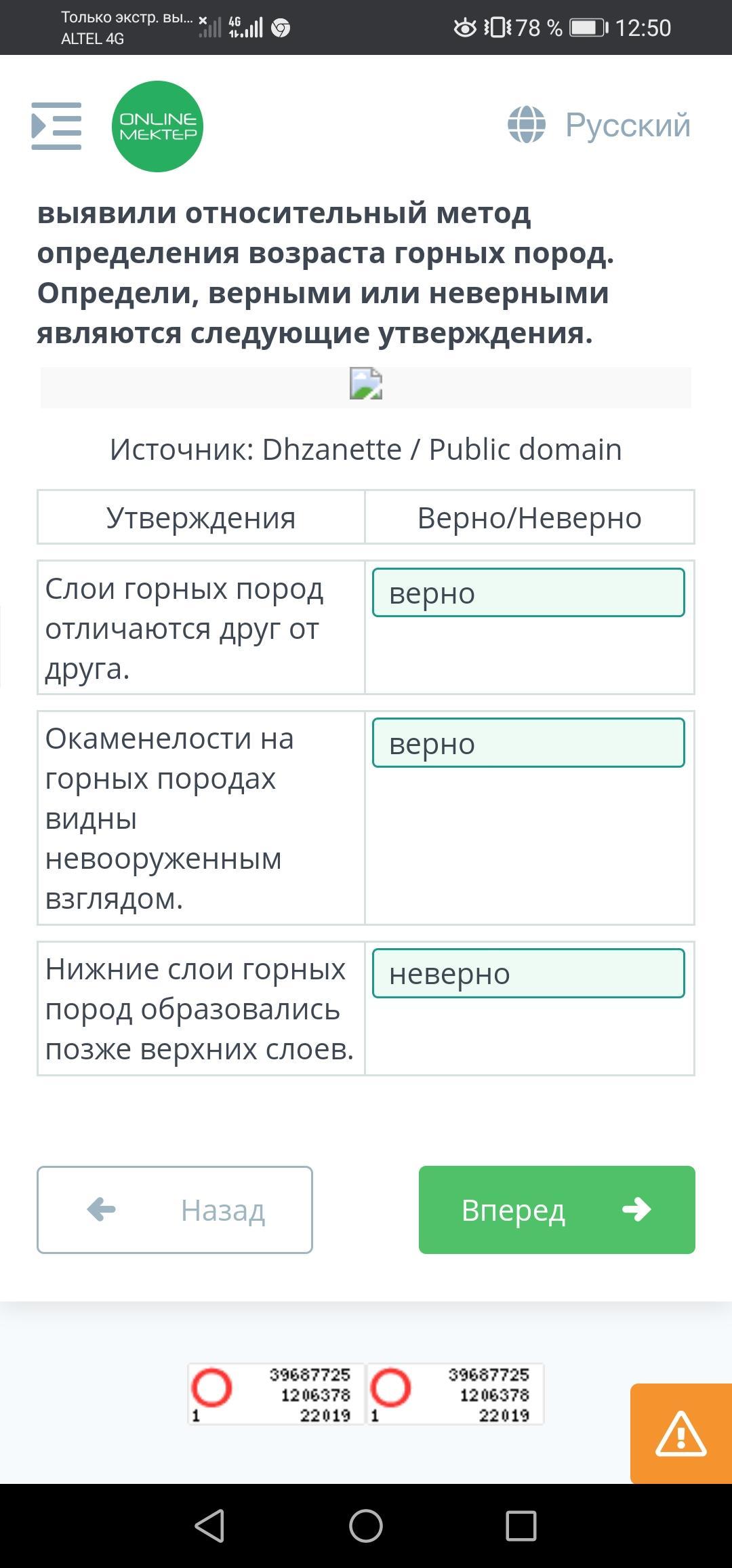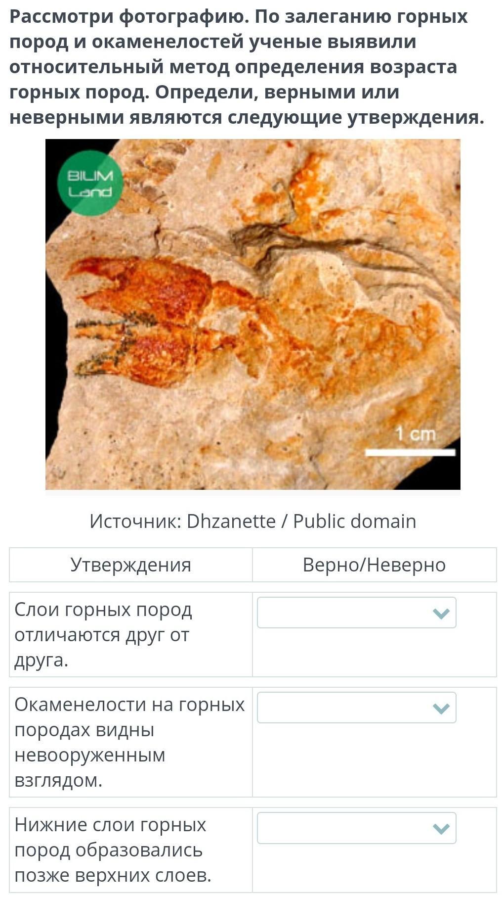 рассмотрите фотографию.по залеганию горных пород и окаменелостей учёные выявили относительный метод возраста горныз пород.определи, верными или не верными являются следующие утверждения