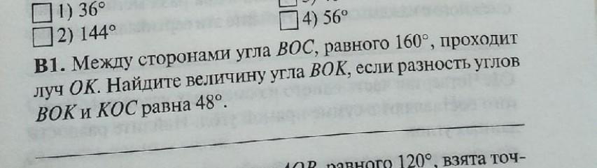 Разность х-у=48; Сумма <ВОК+<КОС=<ВОС.