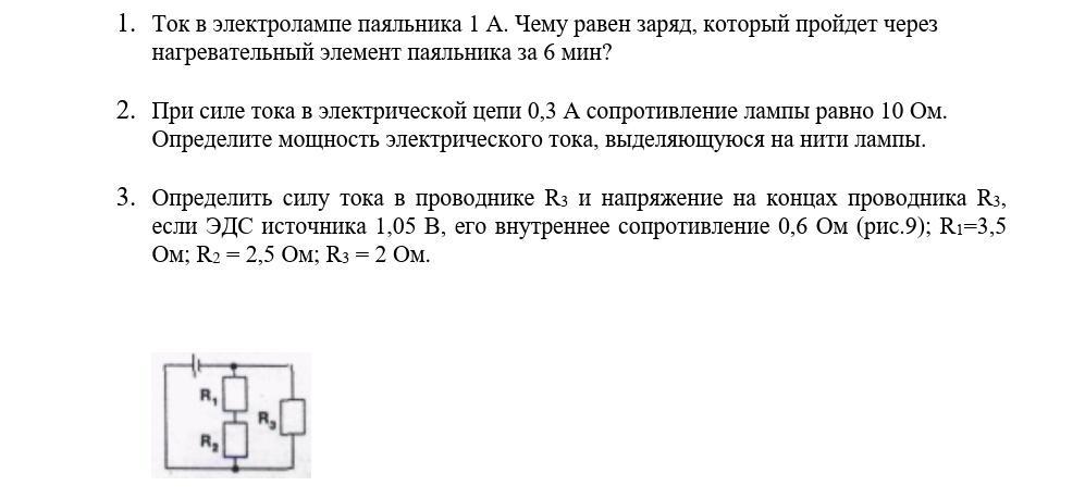 Дано: ε = 1,05 В, r = 0,6 Ом, R₁ = 3,5 Ом, R₂ = 2,5 Ом, R₃ = 2 Ом.