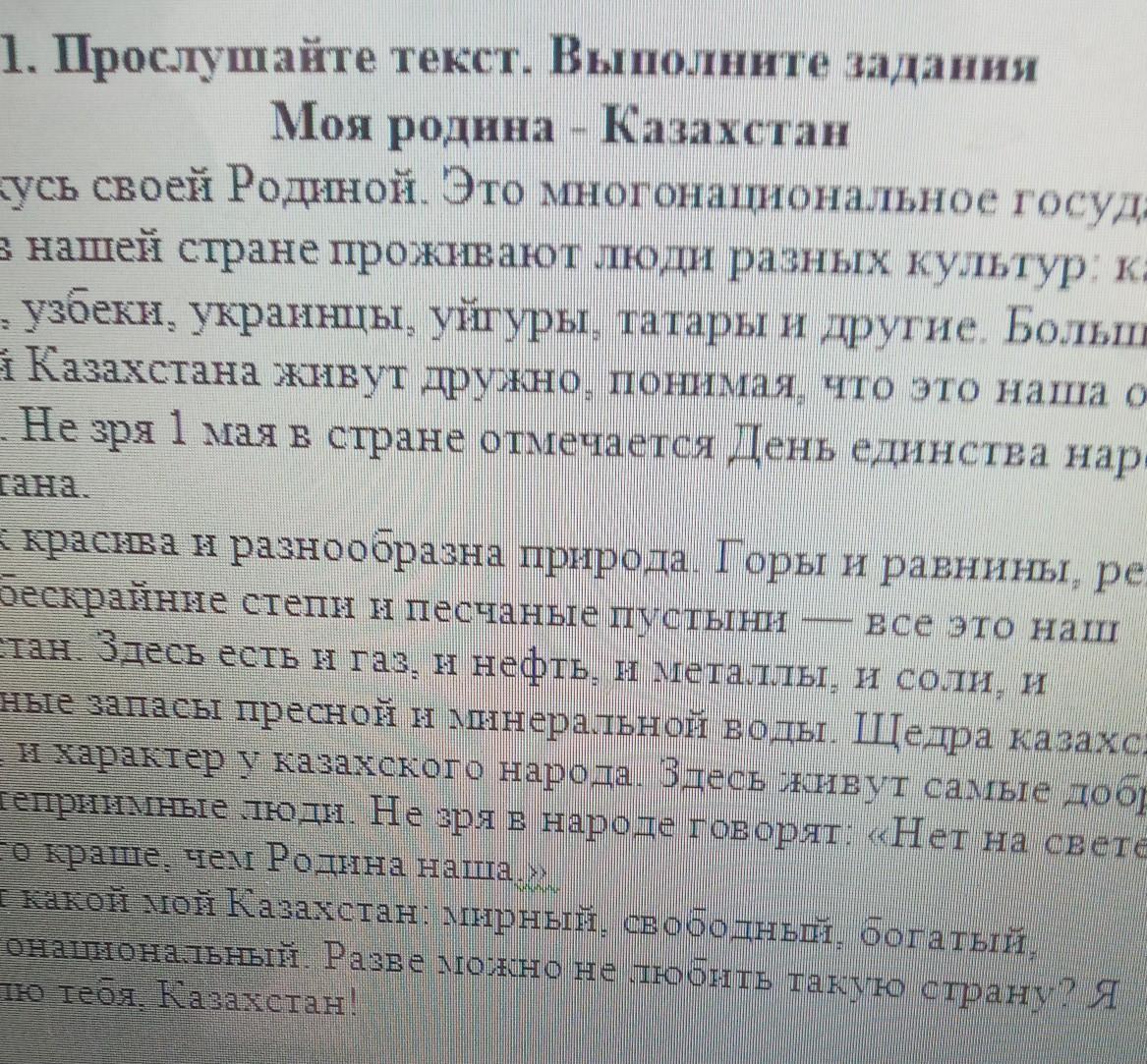 Ответ:Казахстан страна в которой я живу, и люблю.