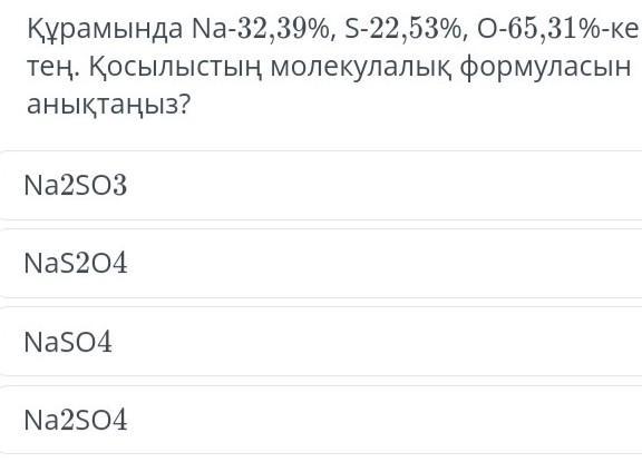 Он содержит Na - 32,39%, S - 22,53%, O - 65,31%. Определите молекулярную формулу соединения?