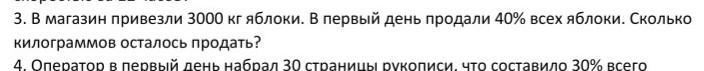 магазин привезли 3000 кг яблоки в первый день продали 40% всех яблок Сколько килограммов осталось продать