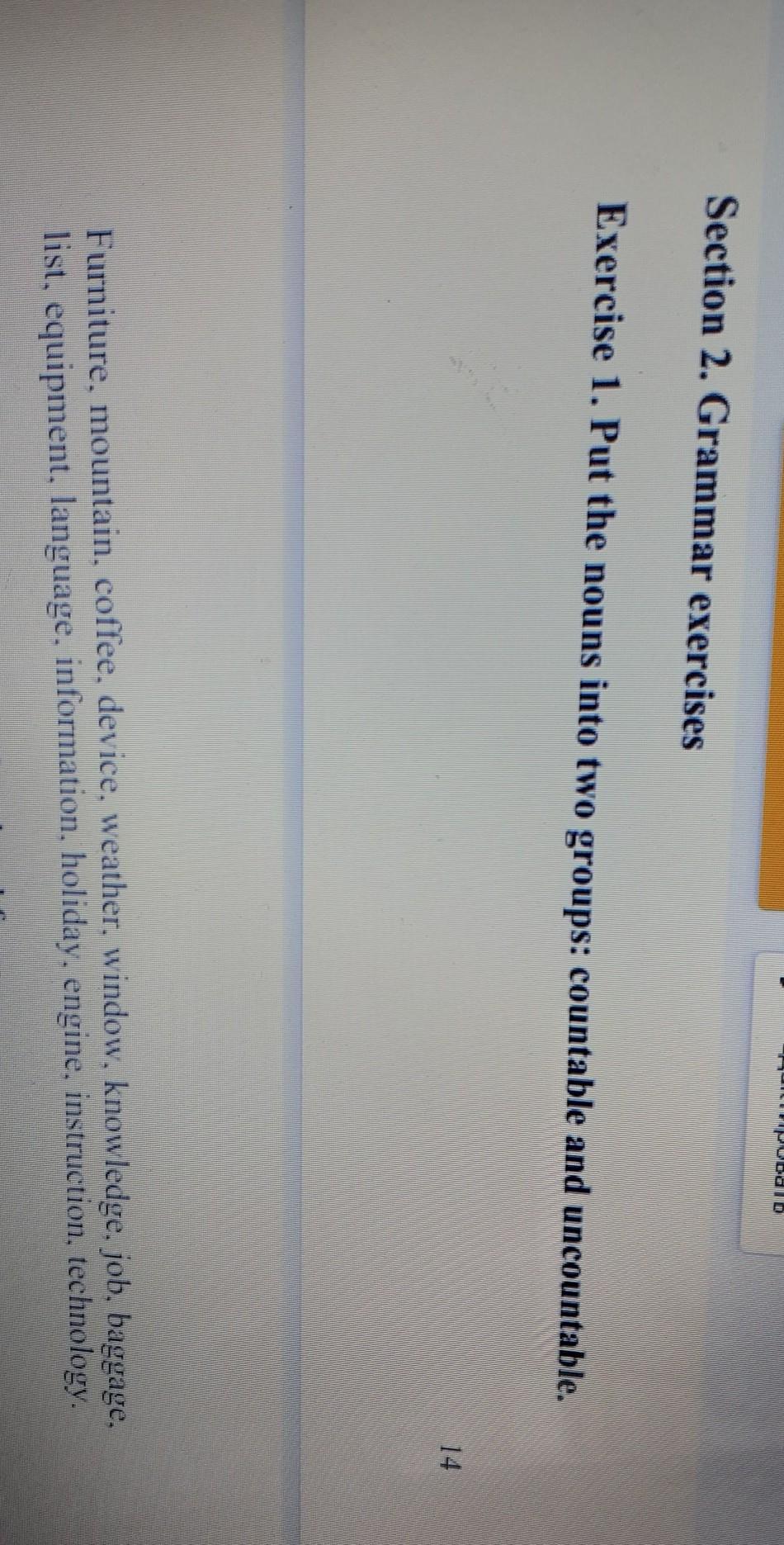 countable nouns:furniture(s), mountain(s),device(s),window(s), knowledge(s), job(s), baggage(s), list(s), language(s), holiday(s), engine(s), instruction(s), technology(ies)