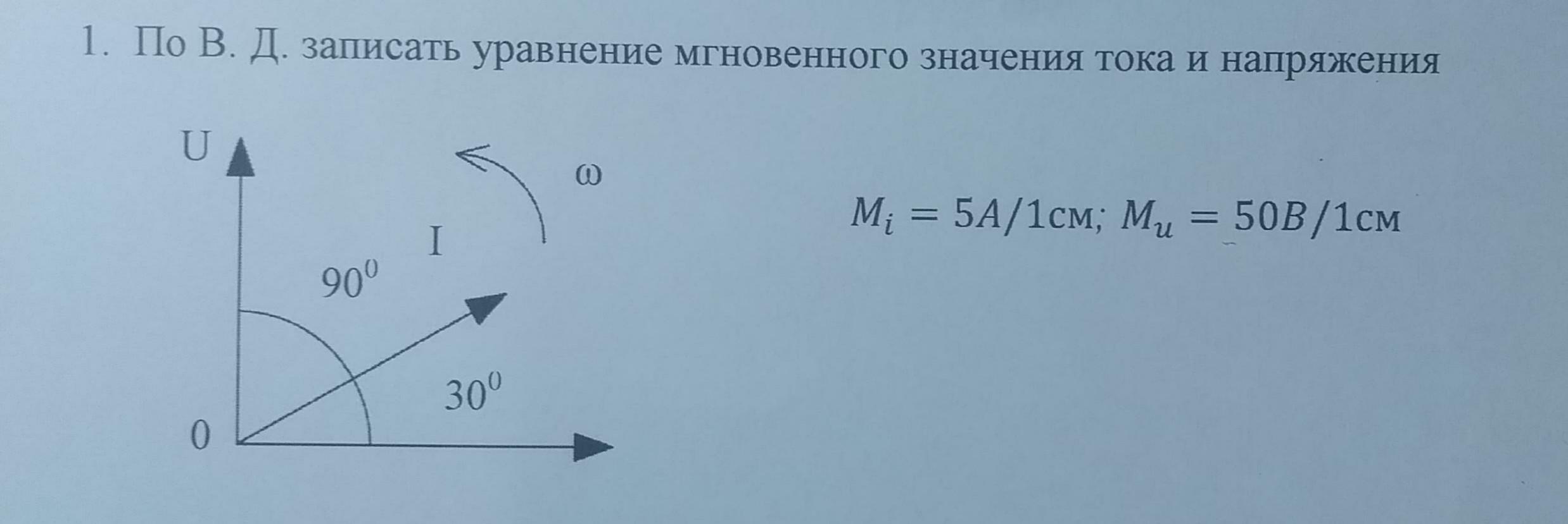 По В.Д.(векторные диаграммы) записать уравнение мгновенного значения тока и напряжения