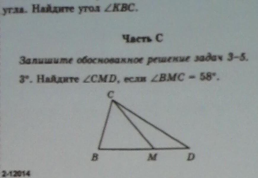 т.к. угол CMD и угол BMC смежные их сумма равна 180 следовательно BMC=180-58=122