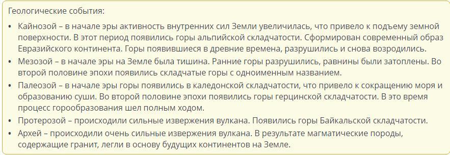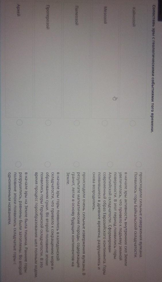 Сопоставь эры с геологическими событиями того времени.