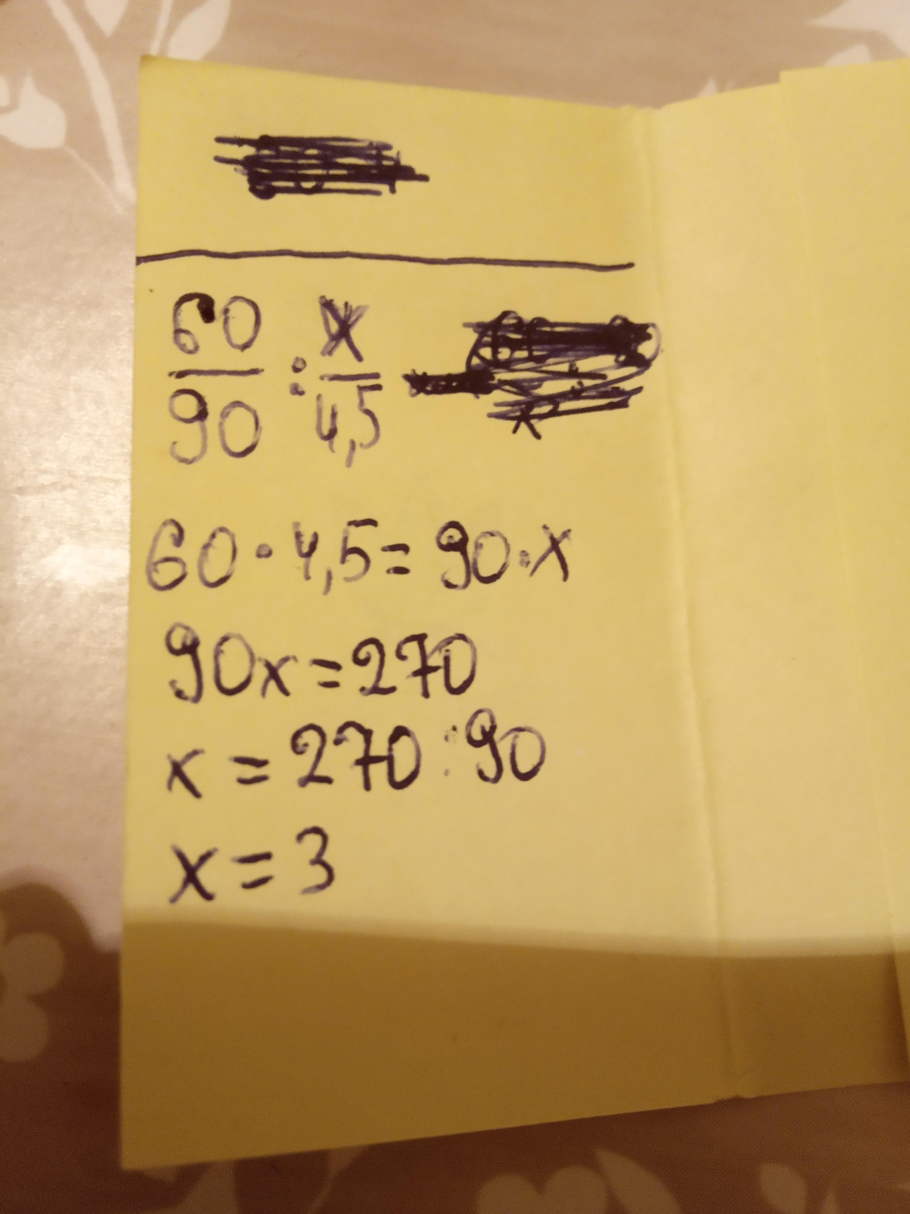 определите вид зависимости величин и решите задачу с помощью составления пропорции. Автобус скорость которого 60/в час проехал за 4,5часов за сколько часов проедет если его скорость 90/км в час