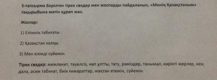 Халқы коп ұлтты,тату.Қазақстан тәуелсіз мемлекет және танымал.Елімнің рәміздері де бар.Мен елімді сүйемін.