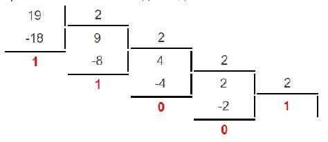 19₁₀ = 10011₂