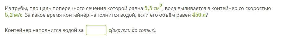 За секунду закачивается 5.5*10^(-4)*5.2 =2.86*10^(-3) м.куб