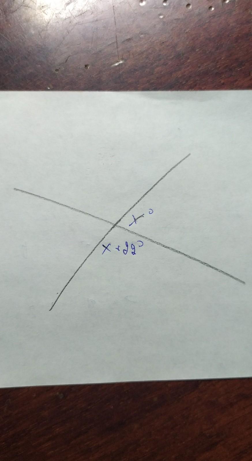 2)пусть 1 угол-х, другой х-22, тогда х+(х-22)=180, 2х=202,х=101 ; значит другой 79 град. Остальные 3 и 4 углы равны первым двум соответсвенно как вертикальные