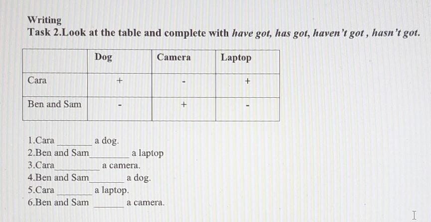 5. Cara has got a laptop.