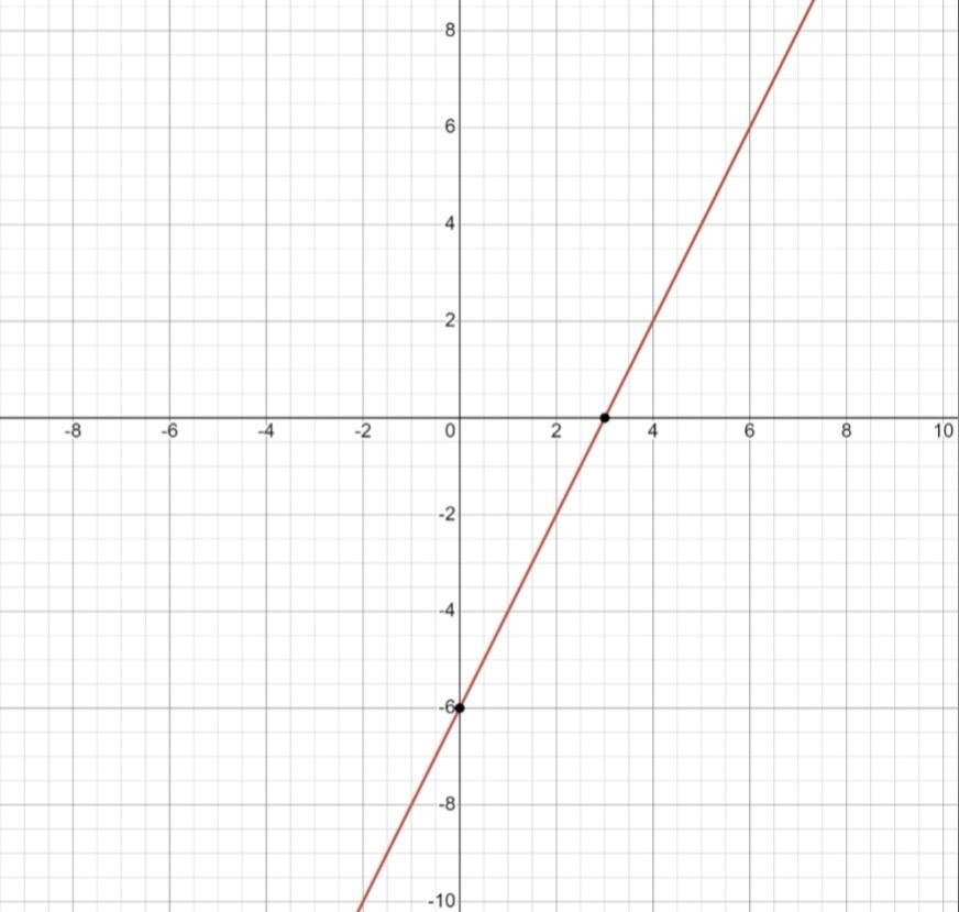 Построим прямую с помощью углового коэффициента и пересечения с осью Y или опираясь на две точки.