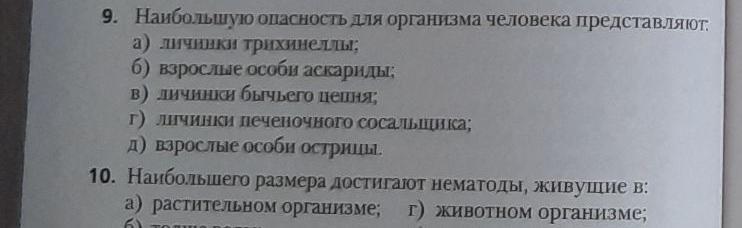 Помогите пожалуйста ответить на девятый вопрос на тему типы круглых червей, заранее спасибо!!!!!