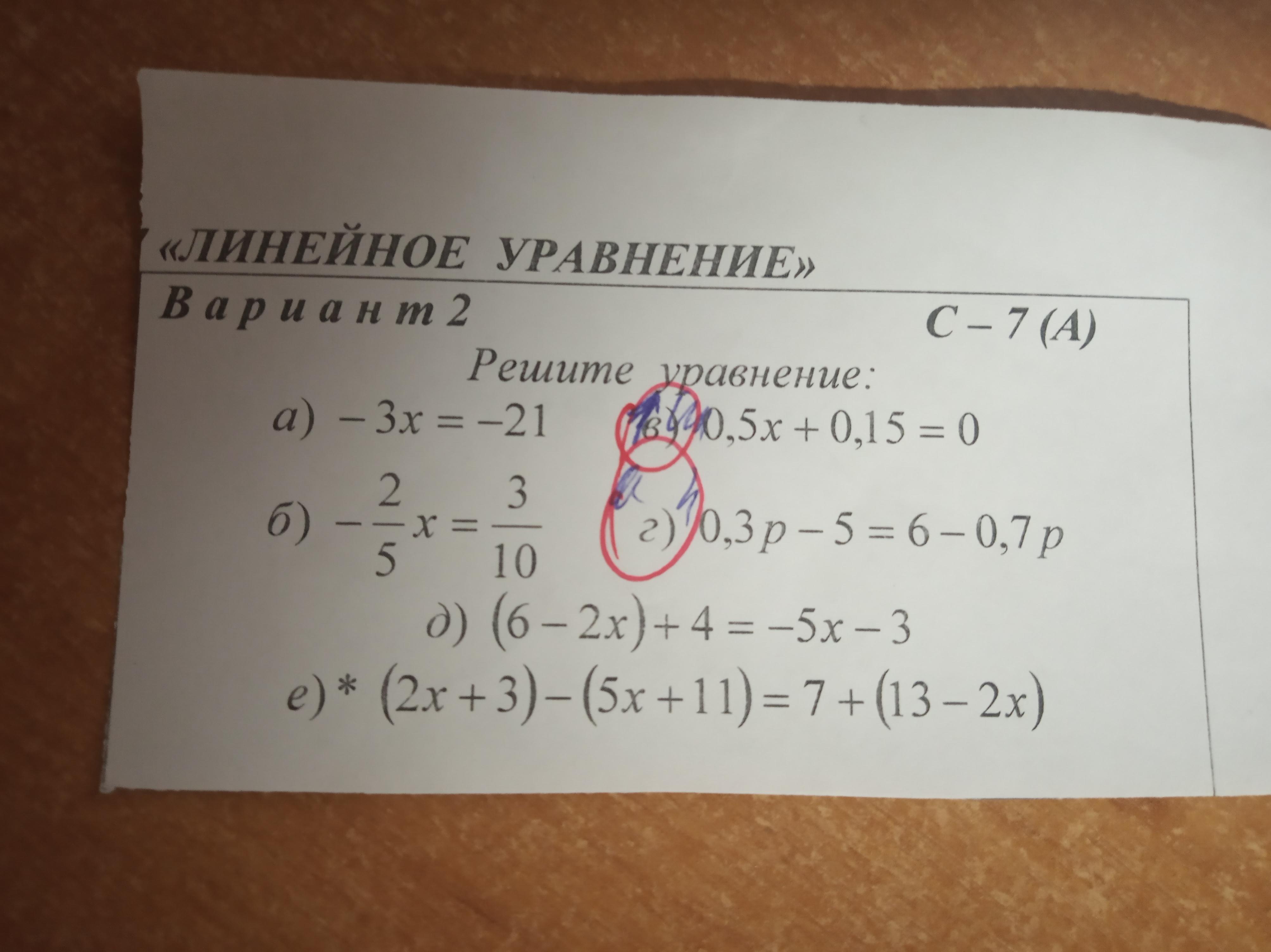 г) 0,3p-5=6-0,7p
