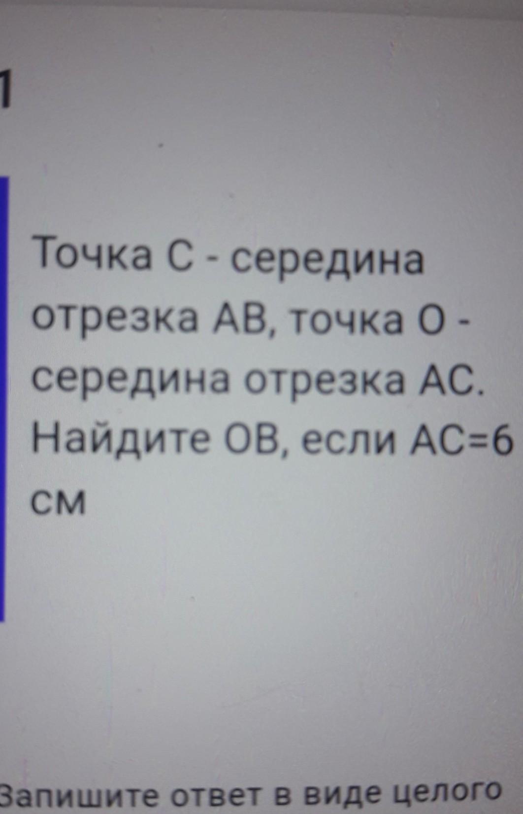 точка C середина отрезка AB. о середина отрезка АС Найдите АВ если АС 6 см. Ответьте пожалуйста,умоляю