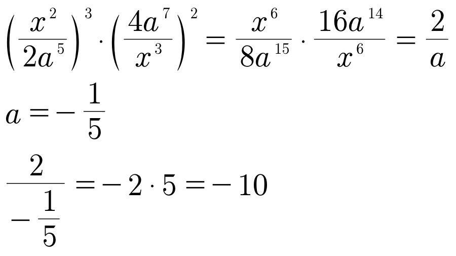 карочк здесь нужно выражение сократить получится 2/а дробью ну и подставить -⅕ и получается -10