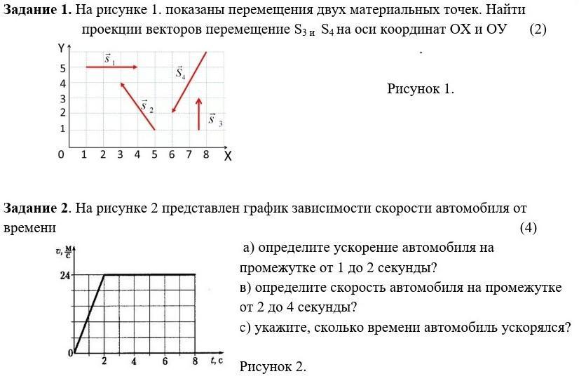 На рисунке 1. показаны перемещения двух материальных точек. Найти проекции векторов перемещение S3 и S4 на оси координат ОХ и ОУ.