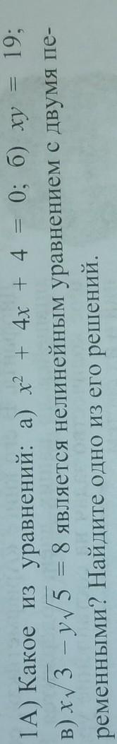 3. ТА) Какое из уравнений: а) х + 4х + 4 = 0; б) xy = 19;является нелинейным уравнением с двумя пе-