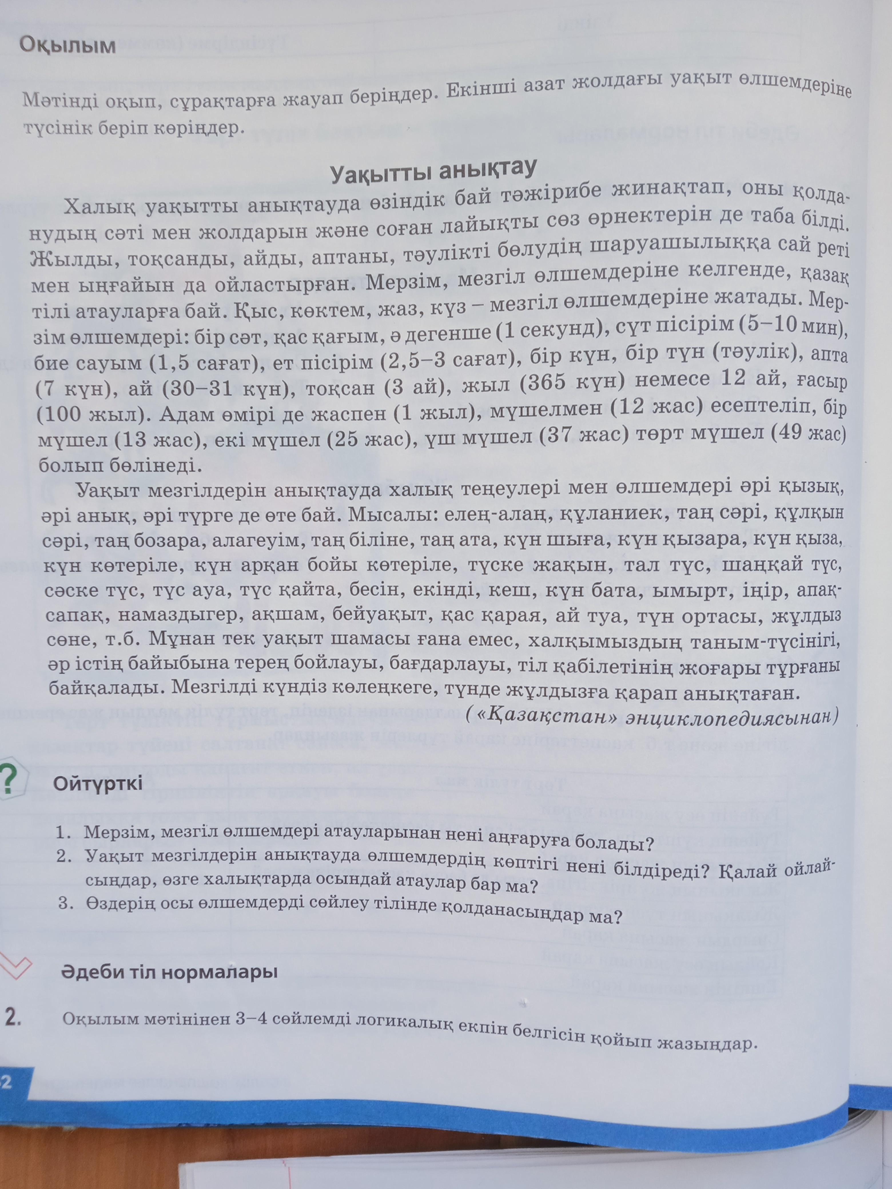 Ответ:1)Қазақ халқының уақыт анықтаудағы қолданған әдістері