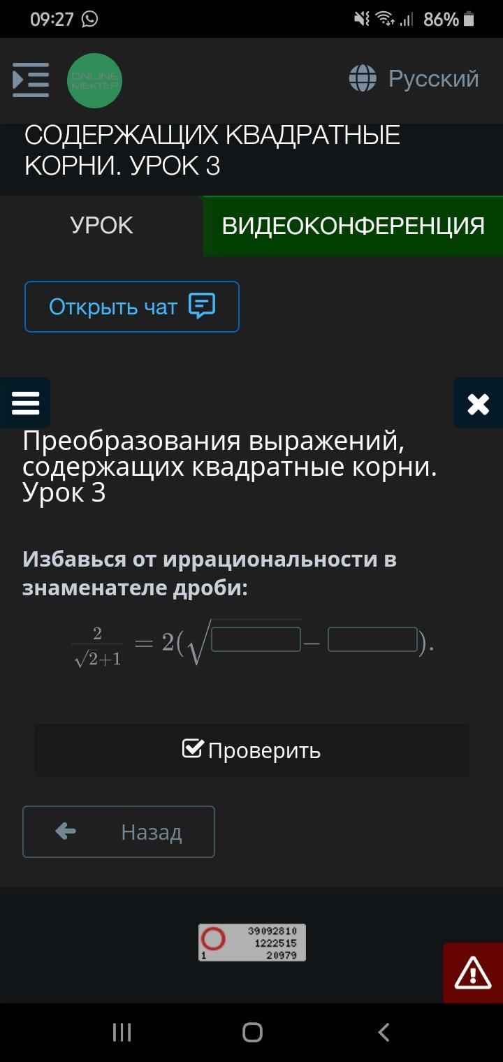 Избавься от иррациональности в знаменателе дроби:2/√ 2+1=2(√