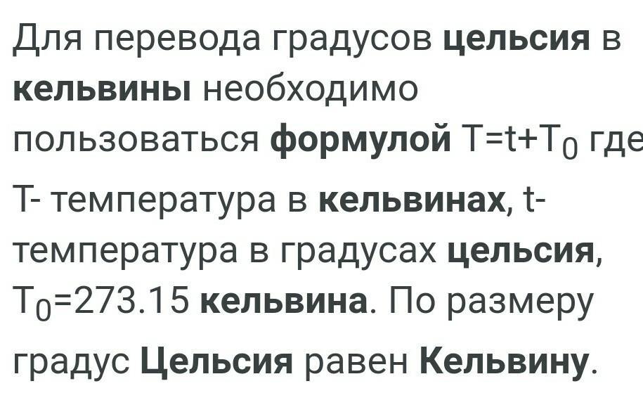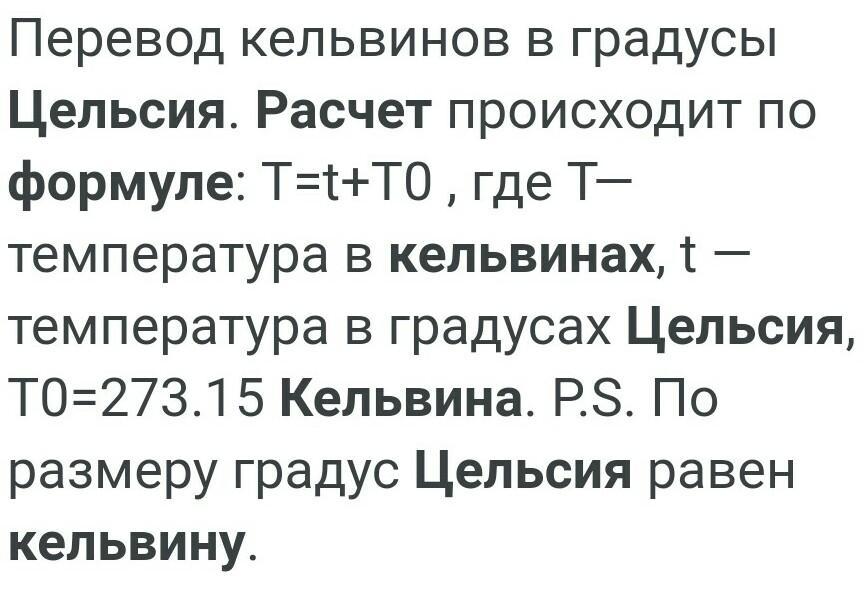Просто прибавить к градусам Цельсия 273,15 получим градусы Кельвина, и наоборот, вычитанием 273,15 из градусов Кельвина, получаем градусы Цельсия