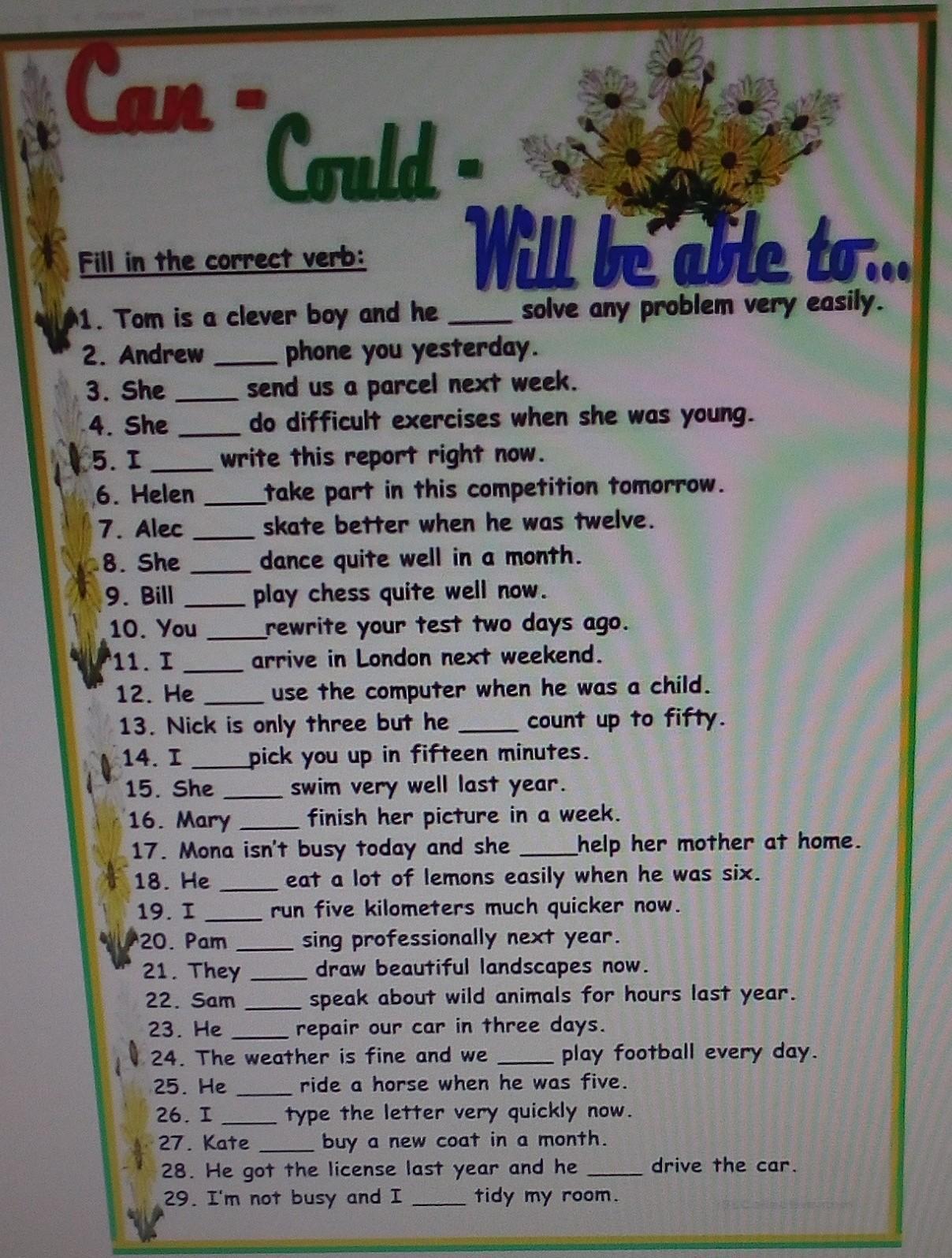 Ответ:1can, could, will be able to, could, can, will be able to, could, will be able to, can, could, will be able to, could, can, will be able to, could, will be able to, can, could, can, wil be able to, will be able to, can, could, can, will be able to, can, can