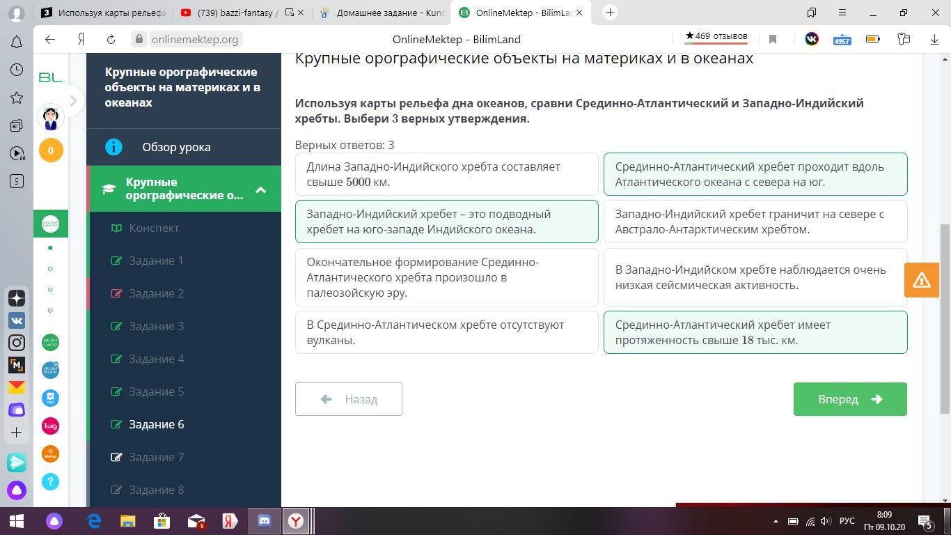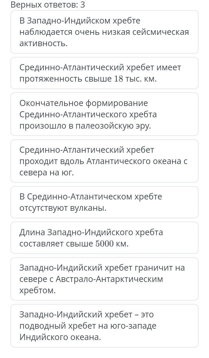 Используя карты рельефа дна океанов, сравни Срединно-Атлантический и Западно-Индийский хребты. Выбери 3 верных утверждения.