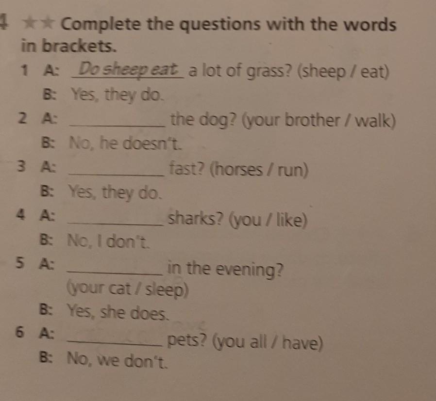 1 A: Do sheep eat a lot of grass? (sheep /eat)