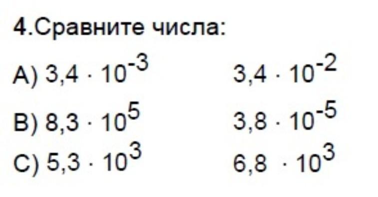 A) 3,4 * 10(-3) = 0,0034 ; 3,4 * 10(-2) = 0,034
