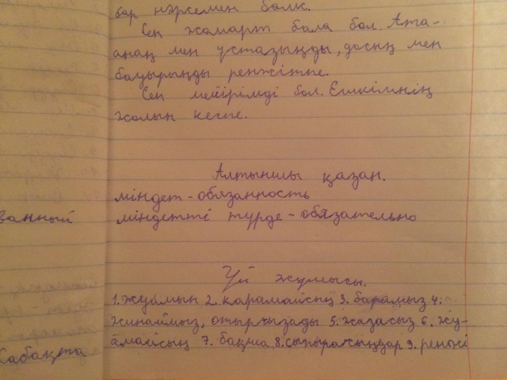 проверте внизу где написано уй жумысы ,если неправильно напишите правильно.