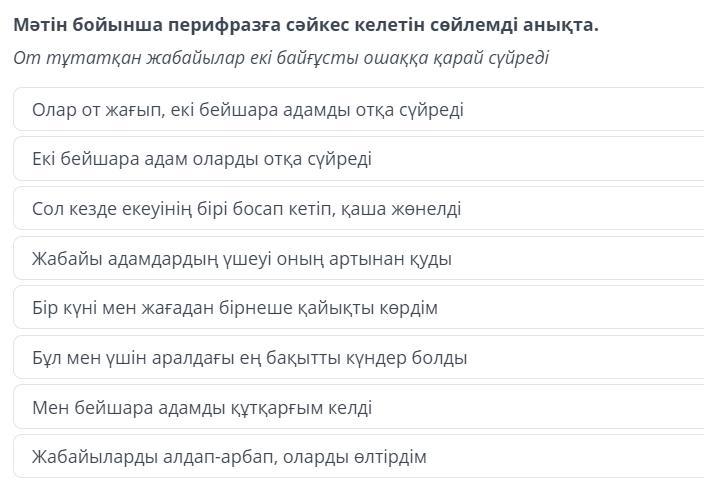 Мәтін бойынша перифразға сәйкес келетін сөйлемді анықта.