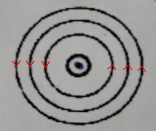 На рисунке видно, что ток направлен от плоскости чертежа к нам. Применяя правило буравчика находим направление силовых линий. Они будут направлены против часовой стрелки.