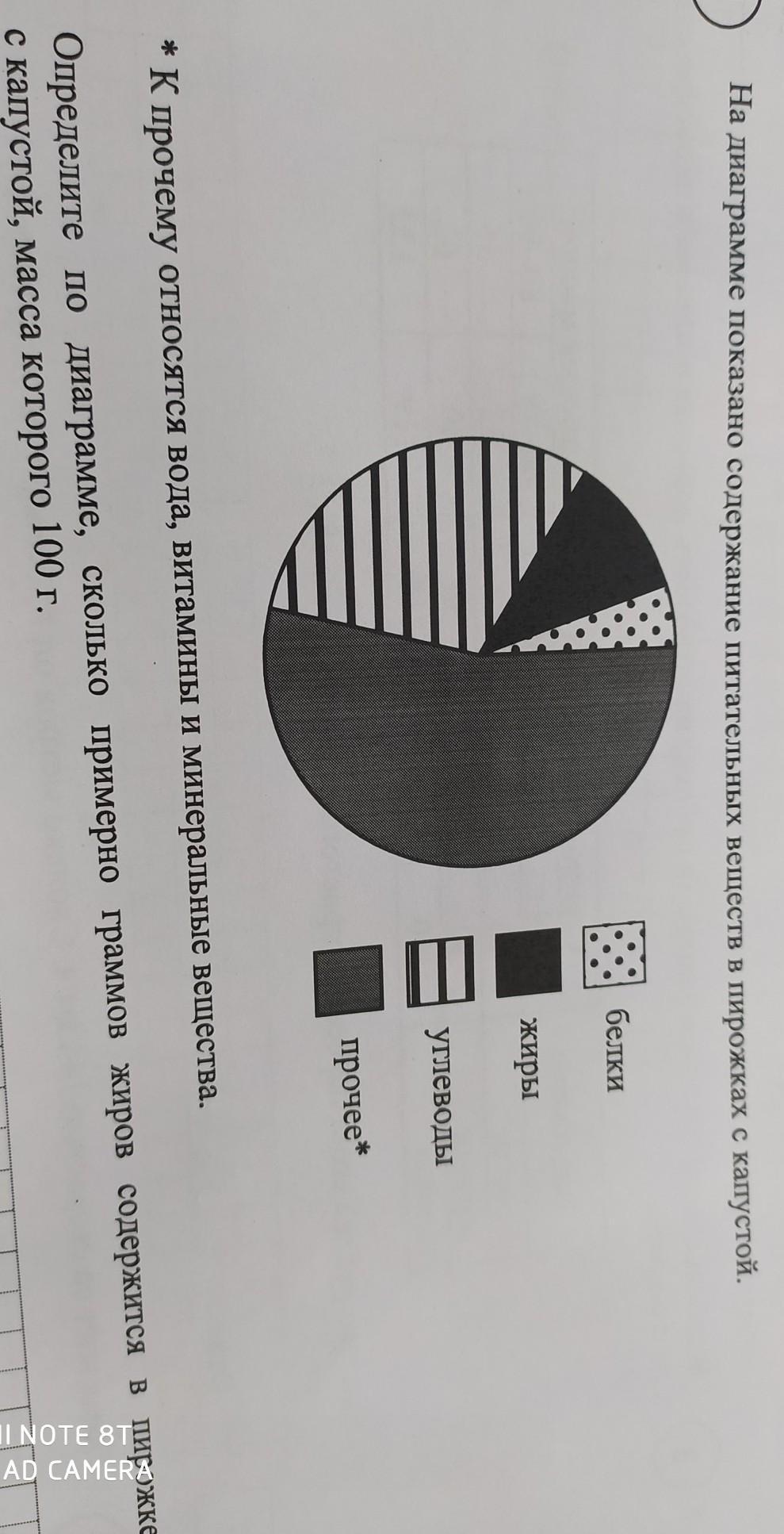 Определите по диаграмме, сколько примерно граммов жиров содержится в пирожке