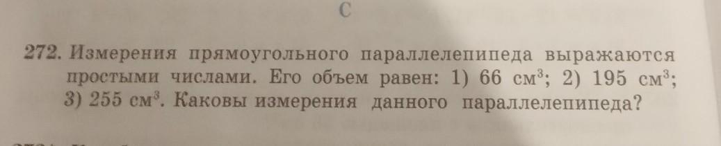 5, 3, 13- простые числа, поэтому измерения данного прямоугольного параллелепипеда равны: 5 см, 3 см, 13 см
