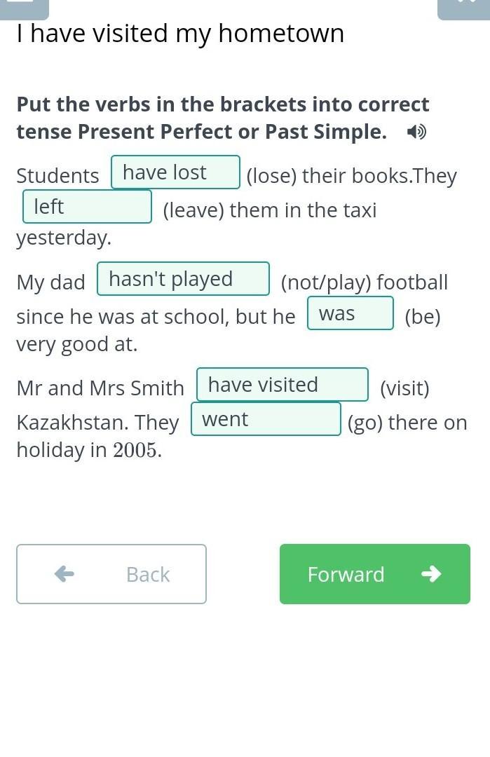 1.Have lost 2.left 3.hasn't played 4. was 5.have visited 6.went