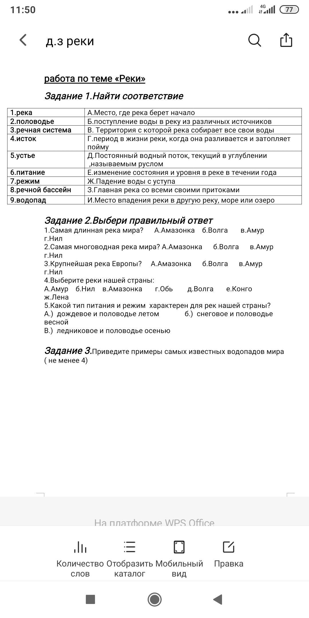 1) нил 2амазонка 3 волга 4 волга, лена,обь амур 5 снеговые и половодье
