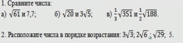 Ответ: 1.a)> б)< в)< 2. (2√6); (5); (3√3); (√29)
