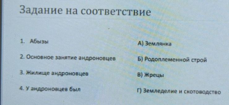 Задание на соответствие
