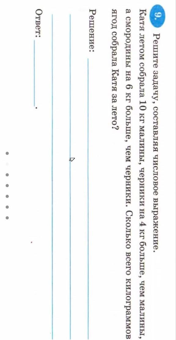 10+4= 14кг малины,14+6=20кг смородины.Всего собрано 10+14+20=44кг яблок