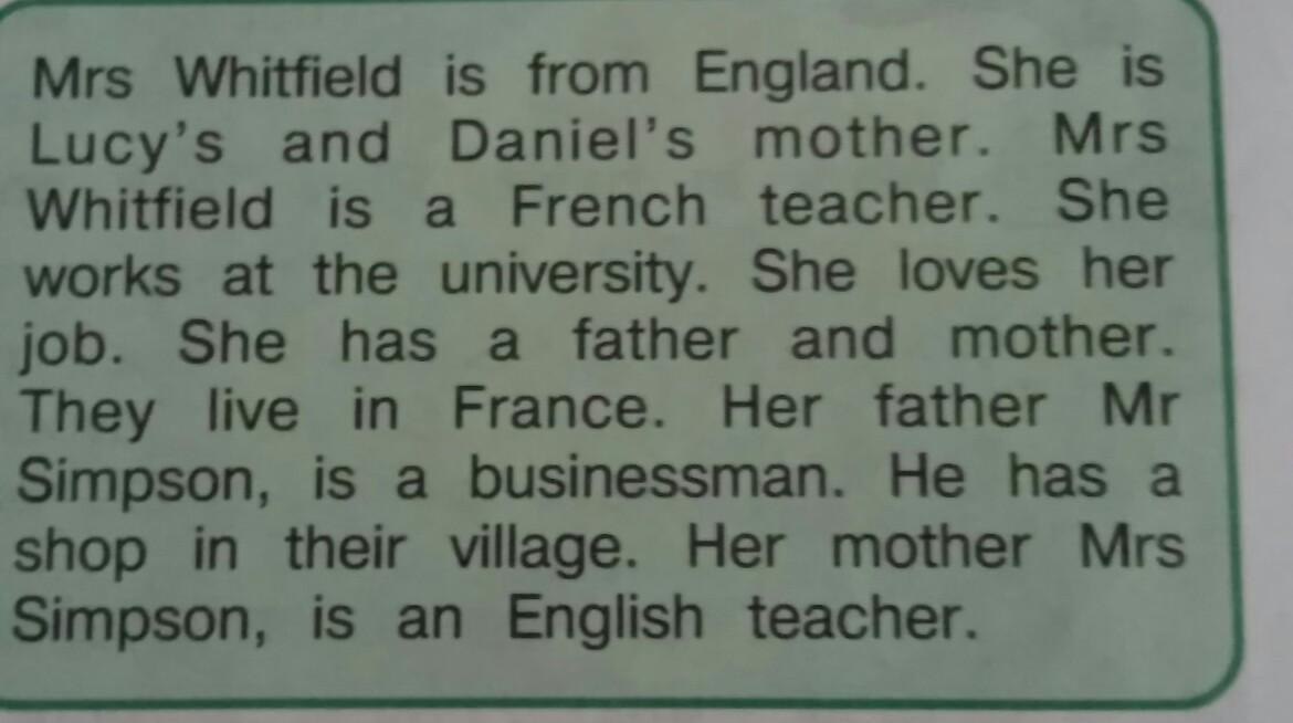1. Mrs Whitfield is from England.
