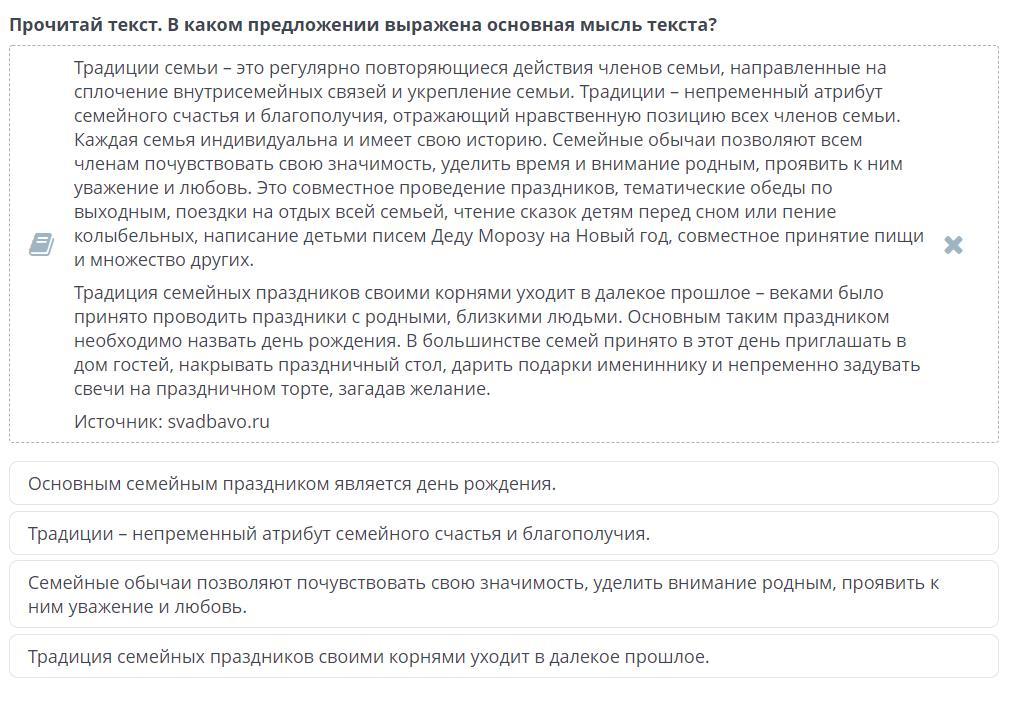 Прочитай текст. В каком предложении выражена основная мысль текста?